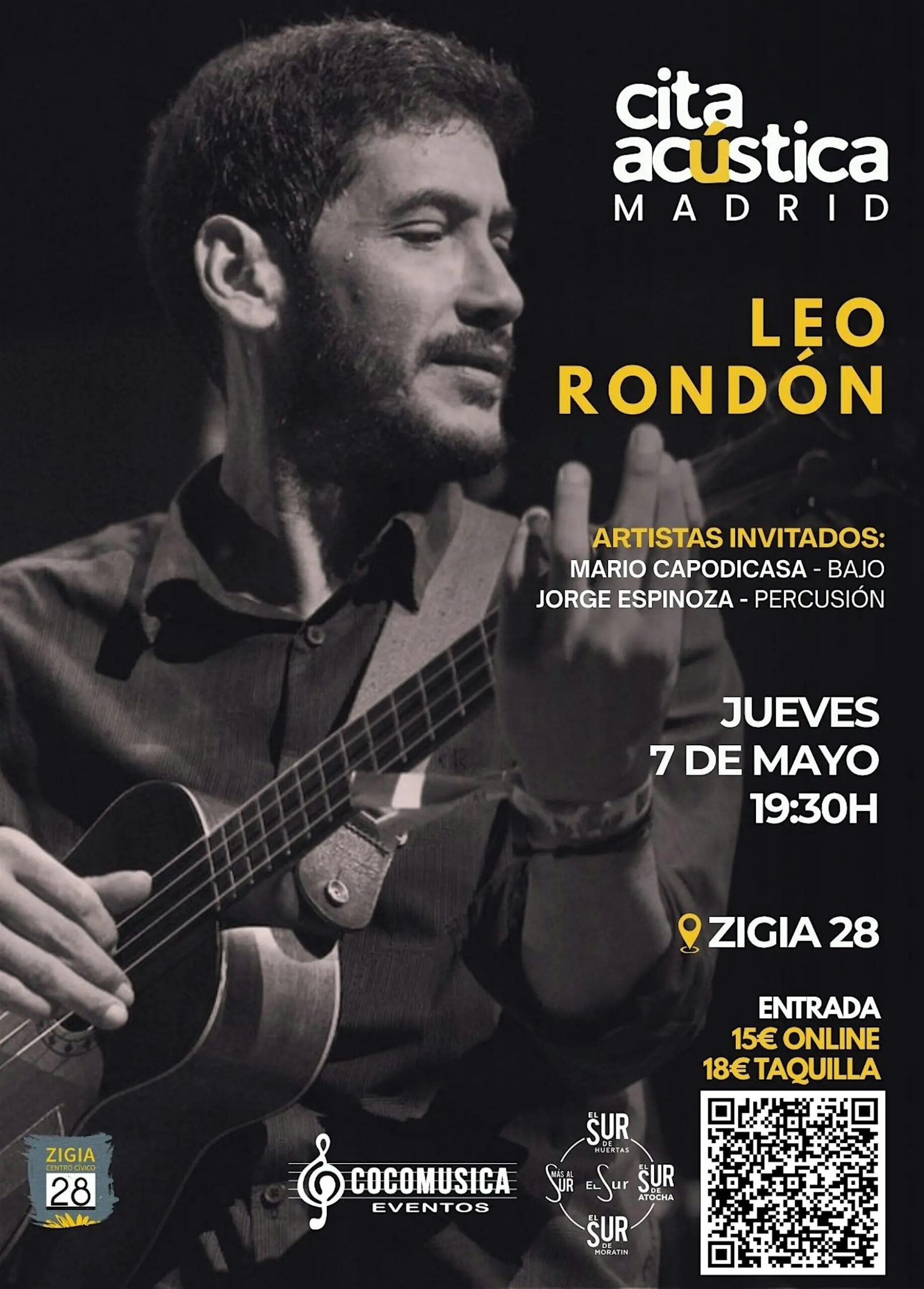 El centro cívico Zigia28, anuncia la Cita acústica Madrid con Leo Rondón